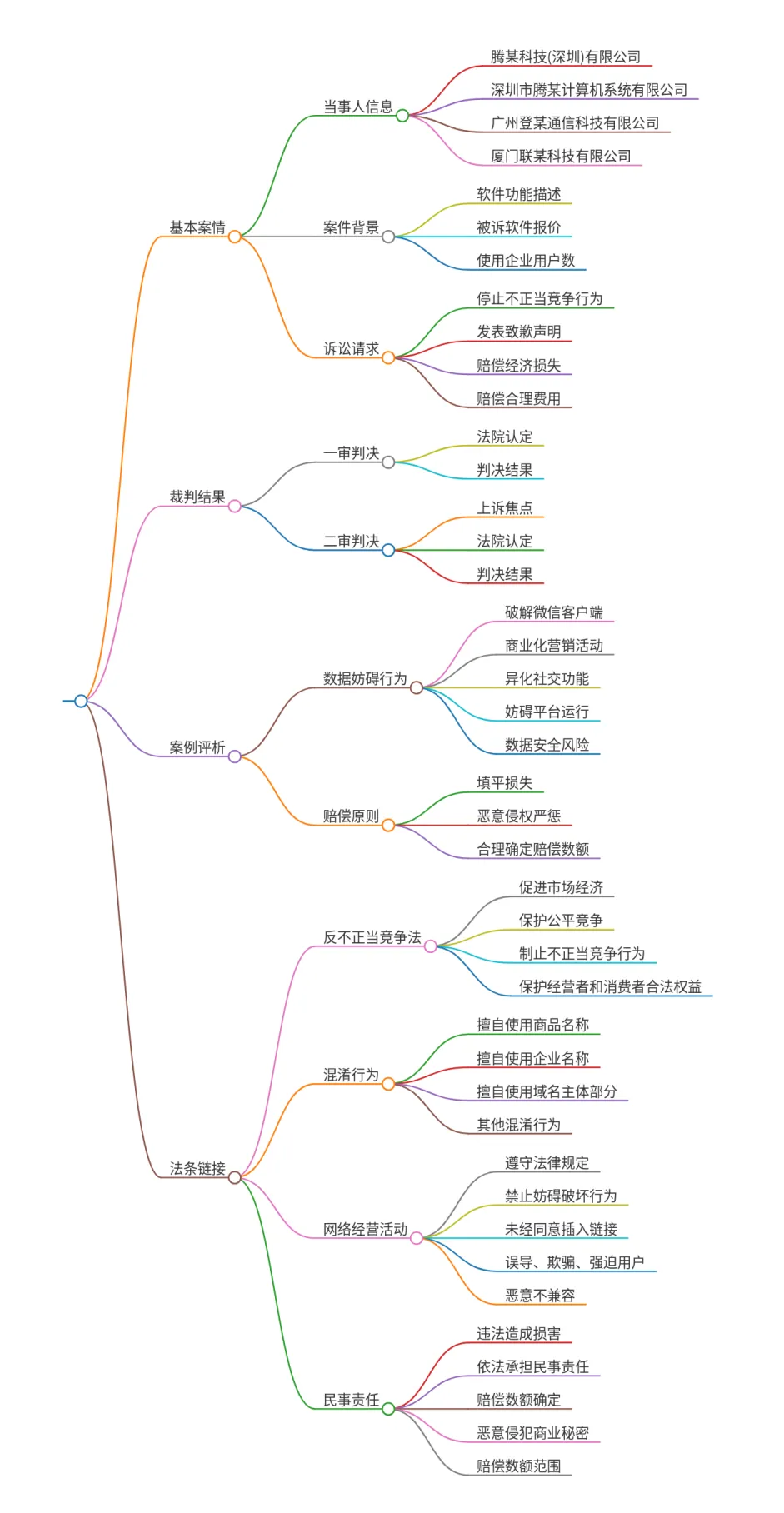 广州登某通信科技有限公司(以下简称登某公司)在其“OK微信管理网站”上宣传、推销由厦门联某科技有限公司(以下简称联某公司)开发的“联络易微信管理系统”软件,该软件通过技术手段与微信软件服务器交换数据信息,获取微信软件的用户信息、聊天内容等各类隐私数据,以此实现“个性称呼群发”“朋友圈统一管理”“管理监控”“多微信号聚合管理”以及客户资料录入、数据化管理、辅助品牌营销等服务功能。被诉软件不同版本的报价为980元-5980元不等,联某公司官网宣传截至2019年4月使用被诉软件注册企业用户数突破20000家。