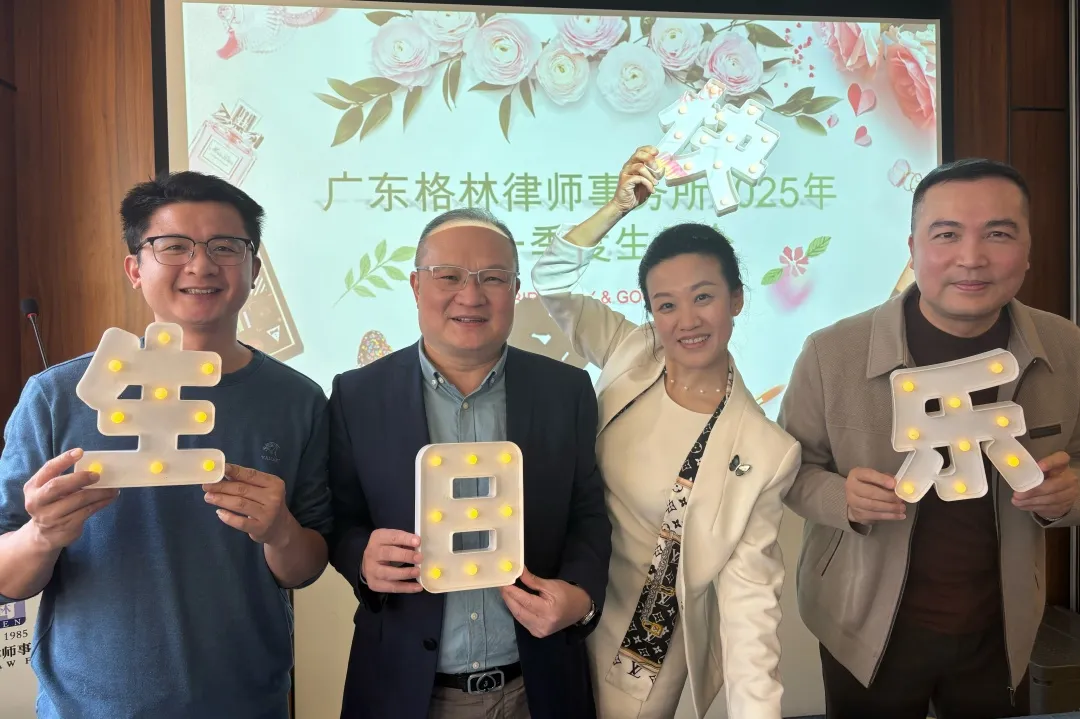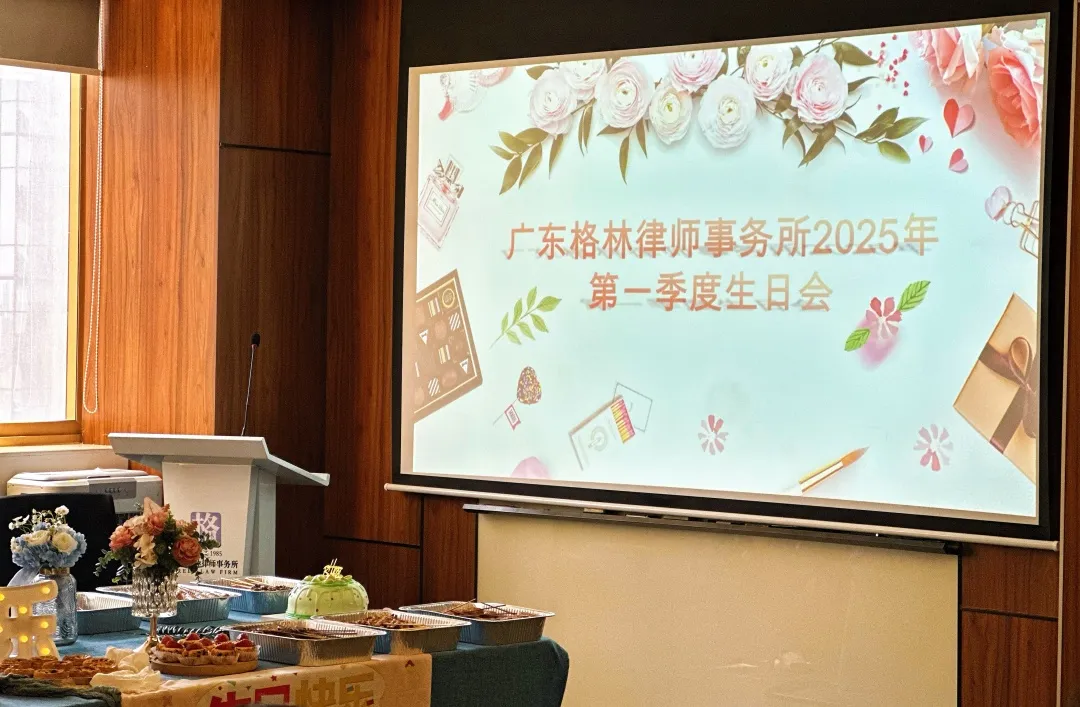 4月2日下午,广东格林律师事务所迎来了2025年第一季度生日会。在这春光明媚的日子里,我们欢聚一堂,用欢声笑语传递祝福,庆祝寿星们的生日,同时也为新一年的奋斗征程增添了温暖与动力。