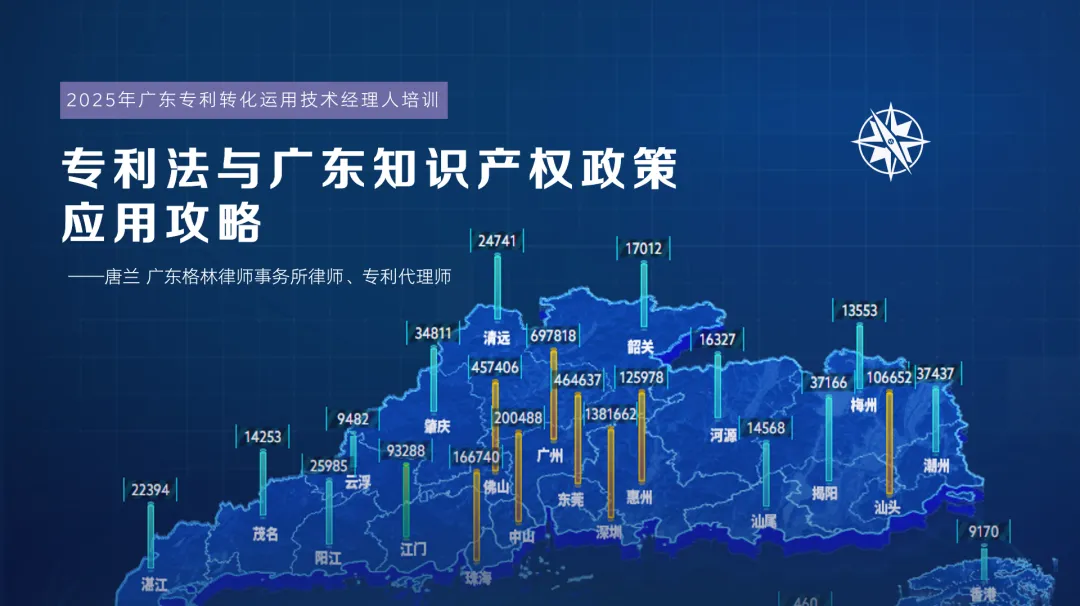 2025年5月27日至29日,由广东省市场监督管理局(知识产权局)、清远高新区管委会、清远市市场监督管理局(知识产权局)指导,清远高新区创新创业服务中心与清远高新区高校科技成果转移转化公共服务平台联合承办的“2025年广东专利转化运用技术经理人培训(粤北片区)”在清远顺利举办。广东格林律师事务所杨河律师团队核心成员之一唐兰律师,受本所高级合伙人黄庆华律师邀请以《专利法与广东知识产权政策应用攻略》为主题担任授课讲师,结合多年法律实务经验开展专业分享。