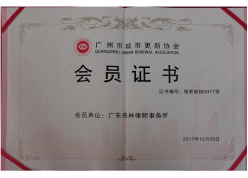广东格林律师事务所知识产权部被广东知识产权保护协会评为“第四届2021-2026年一般会员单位”