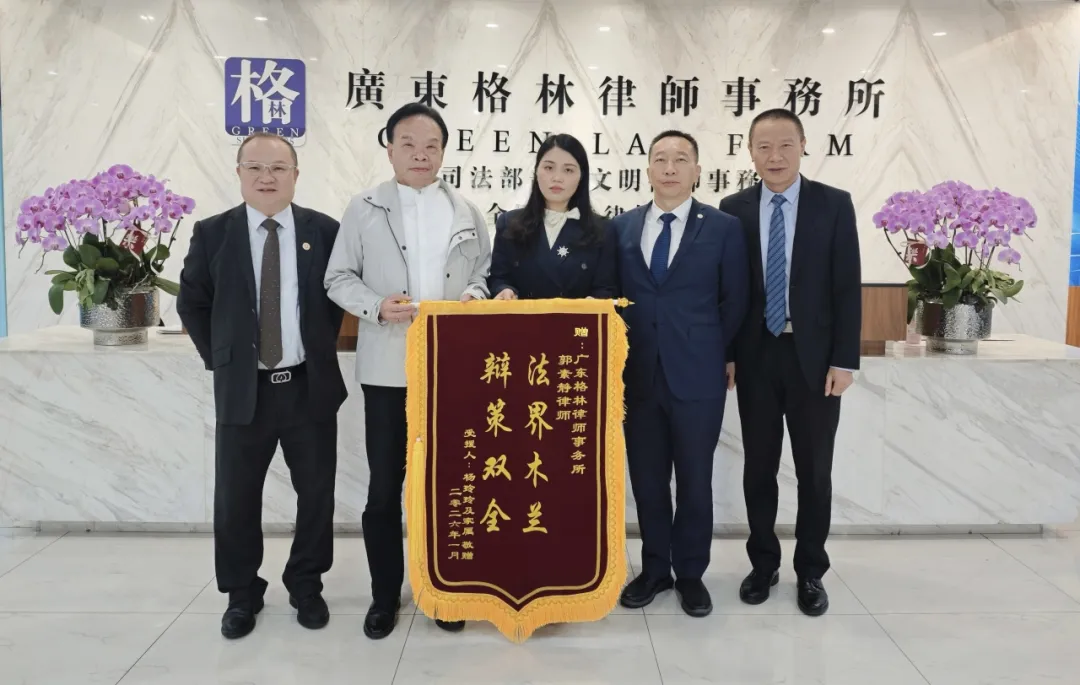 2026年1月5日,在我所管委会副主任黄健律师、党总书记戴辉勇律师以及高级合伙人杨河律师等律师的热情接待下,受援人杨某某的家属廖先生亲手将一面印着“法界木兰,辩策双全”的锦旗交到郭素静律师手中。这面锦旗,既是对郭律师专业能力的高度认可,也是对我所公益法律援助工作的暖心回馈。