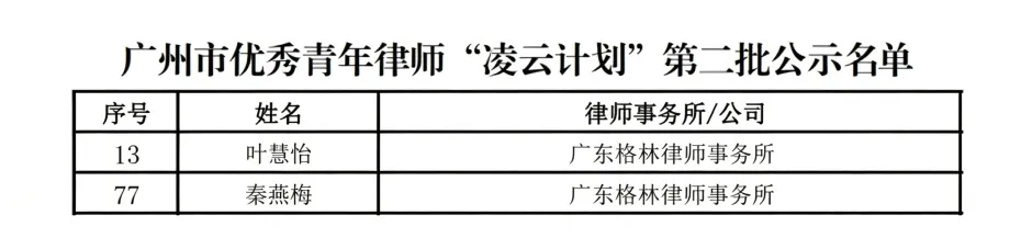 格林喜讯 | 热烈祝贺我所叶慧怡律师、秦燕梅律师入选广州市优秀青年律师“凌云计划”第二批名单