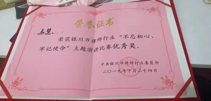 为贯彻落实司法部、全国律师行业党委、自治区司法厅党委、宁夏律师行业党委和银川市司法局党委关于“不忘初心、牢记使命”主题教育工作会议精神,全面把握守初心、担使命,找差距、抓落实的总体要求,锤炼忠诚干净担当的政治品格,进一步深化“不忘初心、牢记使命”教育效果,团结带领全体党员律师奋力开创律师行业的新局面,银川市律师行业于2019年10月24日举办“不忘初心、牢记使命”主题演讲比赛,广东格林(银川)律师事务所委派周洁、马慧律师参加此次演讲比赛。